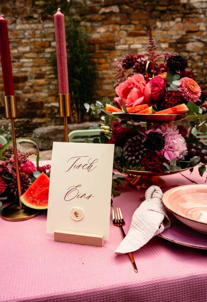Ein wesentlicher Bestandteil der Begleitung ist das individuelle Designkonzept, das wir für euch entwickeln. Dazu gehört ein maßgeschneidertes Moodboard, das Farben, Dekoration, Stilrichtungen und atmosphärische Details vereint. Es dient als visuelle Grundlage, um euren Hochzeitstag harmonisch, stimmig und einzigartig zu gestalten – exakt nach euren Vorstellungen.